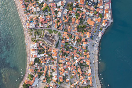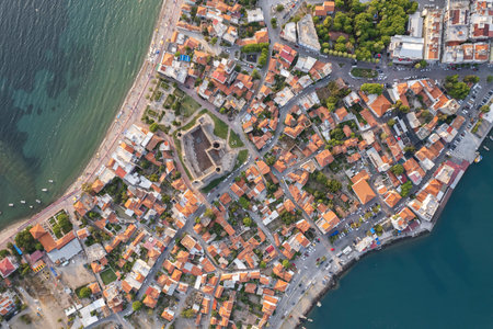 Small city by the sea evening view from top of high hill