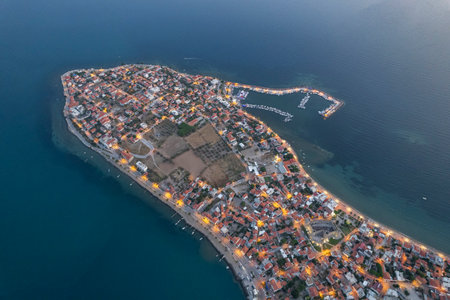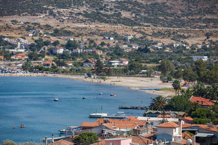 Stratoni, Greece - June 27, 2011: Aerial View of Town Chalkidiki Peninsula in Stratoni, Greece.