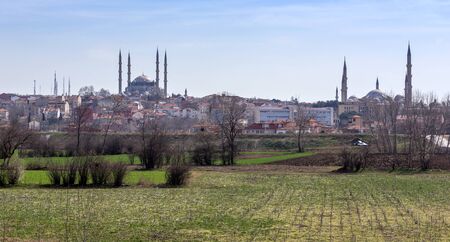 panorama view of old edirne houses, ucserefeli mosque and selimiye mosque in Edirne City of Turkey