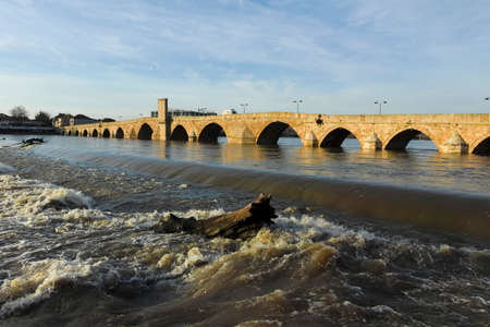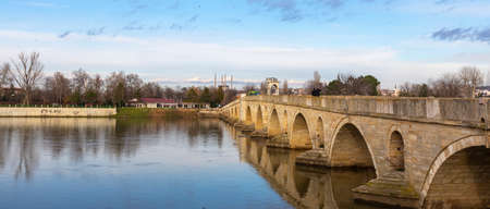 EDIRNE, TURKEY. Meric Bridge (Mecidiye Bridge) above Meric River.