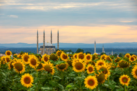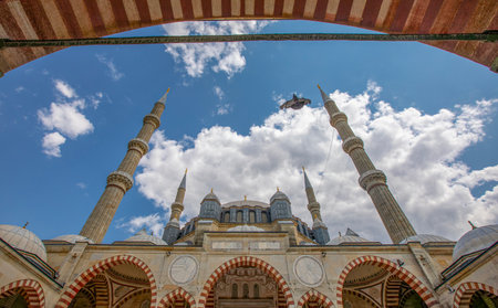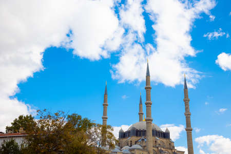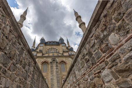 Ottoman Mosques. Edirne Selimiye Mosque with cloudy sky background. Ramadan or islamic architecture background photo.