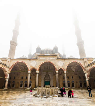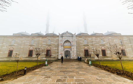 EDIRNE, TURKEY - JANUARY 26, 2020: Selimiye Mosque with foggy weather in Edirne, Turkey. This Ottoman imperial mosque was designed by Mimar Sinan.