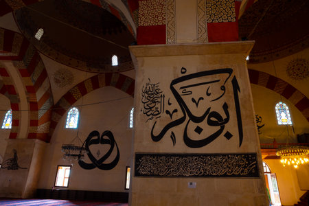 EDIRNE - TURKEY, JULY 12: Calligraphy on a wall of Old Mosque from in Edirne on july 12, 2016. The Old Mosque is an early 15th century Ottoman mosque in Edirne, Turkey
