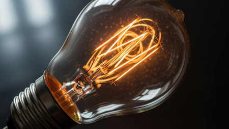 close-up of a burnt-out filament inside a lightbulb, created with generative ai