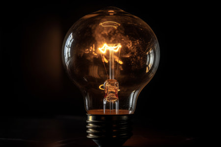 A light bulb is lit up and is sitting on a table. The light bulb is glowing and casting a warm, inviting light. Concept of comfort and relaxation, as if the light bulb is a source of warmth
