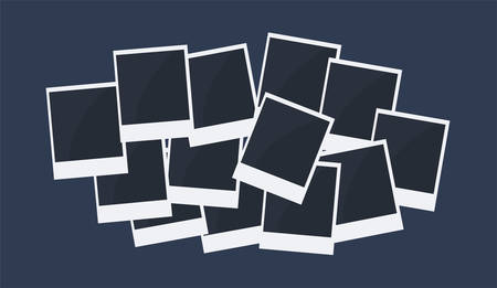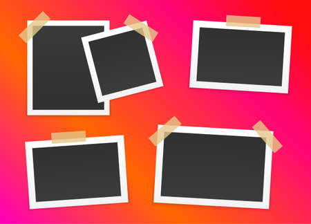 Set of photo frames. Collection of retro pictures on bright background. Photographers work, pleasant memories, family album, past. Cartoon flat vector illustrations isolated on vivid backdrop