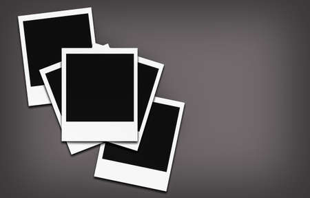 Paper photo frames with blank space on gray textured background