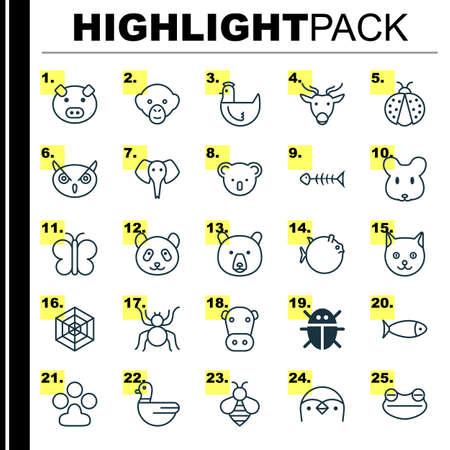 Nature Icons Set. Collection Of Kine, Piglet, Spider And Other Elements. Also Includes Symbols Such As Butterflyfish, Web, Globefish.