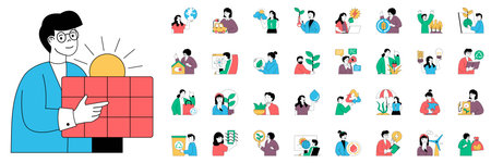 Ecology concept with character situations mega set. Bundle of scenes people saving planet, supporting plants nature and resource, reuse and recycle and other. Vector illustrations in flat web design