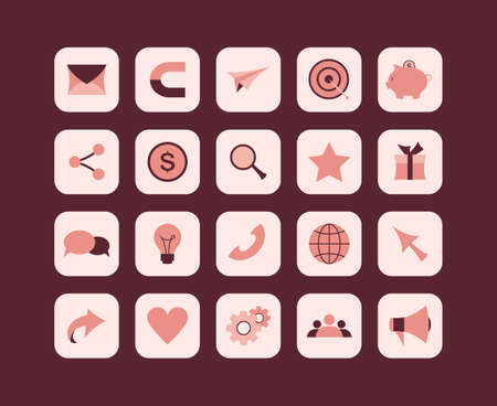 Set of digital marketing icons in modern style. Includes various social media icons. SEO. Email marketing and more. Ideal for use in presentations. websites. and marketing materials.