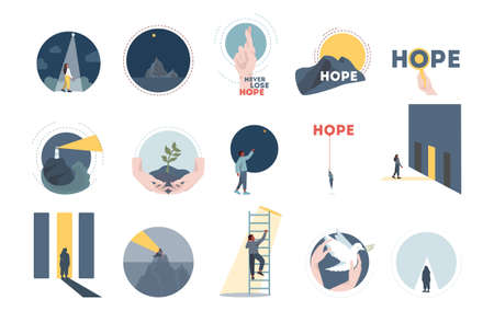 Hope concept set. New beginning and faith in the future, support