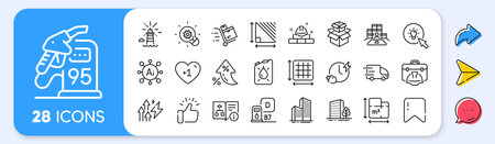 Energy inflation, Inventory and Buildings line icons. Interest rate, AI generate, Inflation icons. Pack of Skyscraper buildings, Petrol station, Diesel station icon. Vector