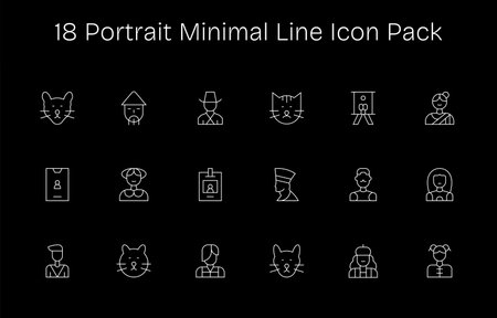 Professionally designed 18 icons in Minimal Line style, capturing the essence of Portrait for UI design.