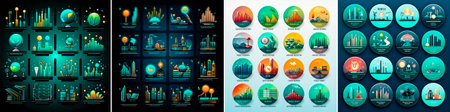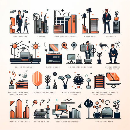Includes various icons such as business people, charts, finance and technology. Ideal for use in presentations, websites and marketing materials.
