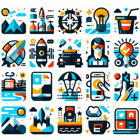 This image features a collection of 20 different icons, each representing various concepts and tools. The icons include symbols for technology, security, communication, and productivity. They are designed in a minimalist style and are useful for web design, presentations, and other visual projects.