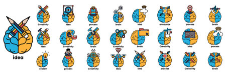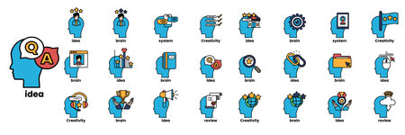 A Set of illustrations in the concept of brain and things in line art style