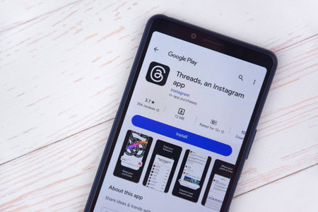 Kharkiv, Ukraine, July 06, 2023: Threads app logo seen on screen. The new application by Meta Platforms is Twitter competitor.