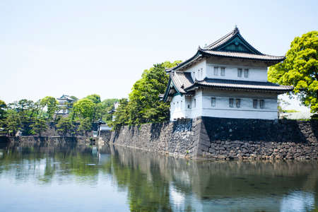 Palace wall and canal surrounding Fukiage Omiya Palace in Kokyo park in Tokyo in Japan