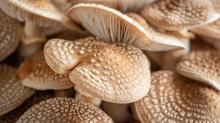 Discover a visually appealing arrangement of fresh white mushrooms showcasing delicate gills and smooth caps, perfect for culinary inspiration or natural food themes.