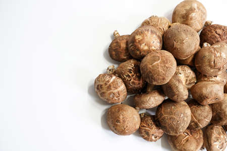 Close Up Fresh Shiitake Mushroom isolated white background. Selective Focus. (Lentinula edodes)