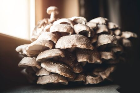 Fresh shiitake mushroom, edible mushroom and food ingredient in Asian cuisine