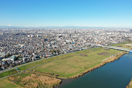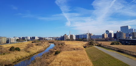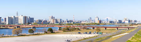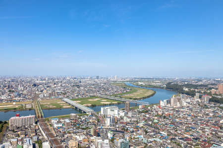 Arakawa and Tokyo cityscape. Shooting Location: Adachi-ku, Tokyo