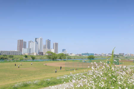 tokyo, japan - 3 august 2025 Scenery Tsukishima Tsukuda Park Chuo-ku. High quality photo