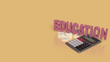 Glass jar with coins and the word education on wood block. Saving Money for Education Concept.