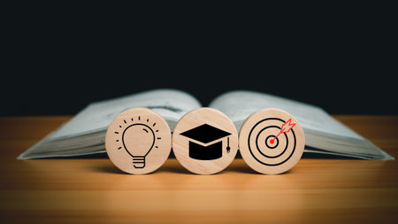 Illuminated Education Blocks on a Desk with Warm Lighting