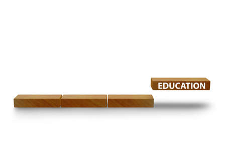 Wooden block for Education concept on wood and white background, close up and selective focus.