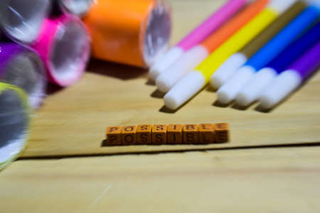 Possible on wooden cubes with colorful paper and pen, Concept Inspiration on wooden background