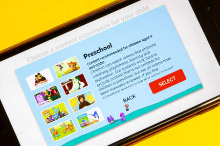 Los Angeles, California, USA - 22 January 2020: YouTube Kids Preschool app, Illustrative Editorial.