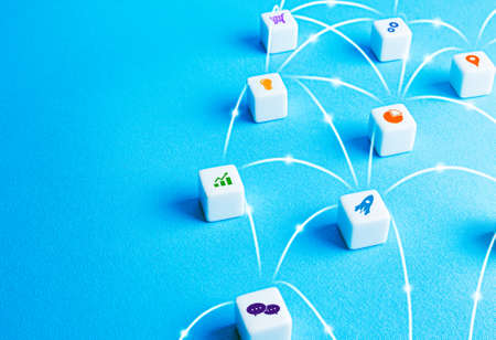 Business components connected by lines. business creation. Favorable conditions for company growth and investment climate. industrial park concept. Entrepreneurship. Tools and services