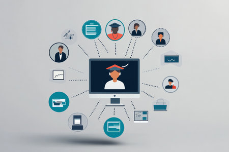 Interconnected educational technology icons highlighting screen sharing in remote learning