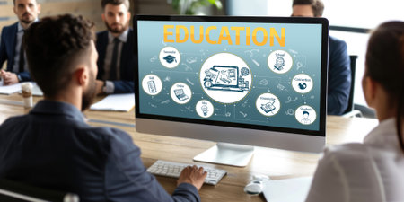 E-learning and Online Education for Student and University Concept. Graphic interface showing technology of digital training course for people to do remote learning from anywhere.