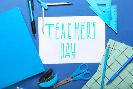 Teachers day. Portrait of teacher or female tutor working at table in college or high school. Young women student studying in class.