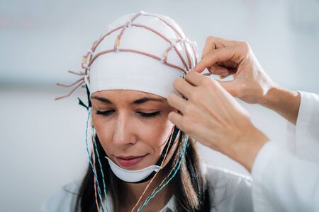 Doctor and patient with encephalography electrode. Electroencephalogram