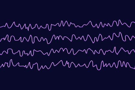 This abstract illustration features a glowing waveform on a dark background. It symbolizes health, technology, and energy, perfect for digital projects.