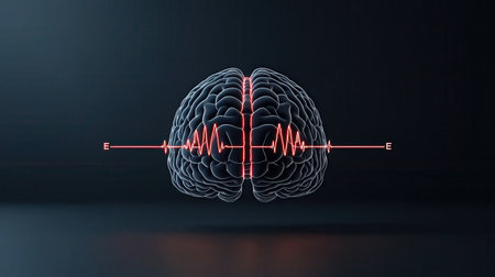 This digital illustration features a stylized brain with a heartbeat waveform, showcasing the connection between mind and health in a minimalist design.