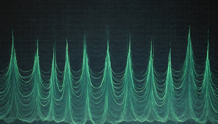 This abstract image showcases sound waves as they depict audio frequency patterns with sharp peaks and valleys, creating a modern visual representation.