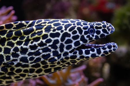 Portrait of a spotted moray eels in the reefs