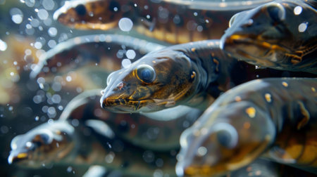 The Lamprey Pair - Delving into the Fascinating Existence of Two Primitive Aquatic Predators. Generative AI