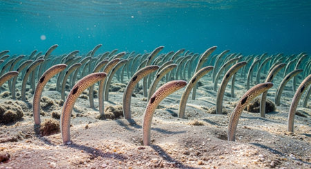 garden eels close-up view in ocean. Sea life