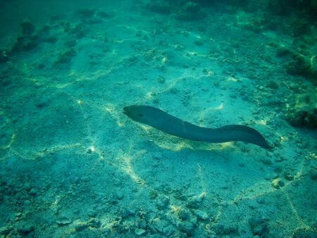 Murena fish hunting underwater Close up