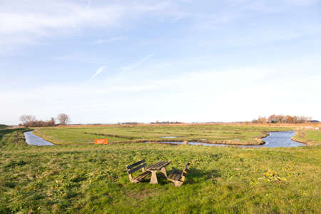 picknick area and meadows in waterland noord-holland in countryside north of amsterdam