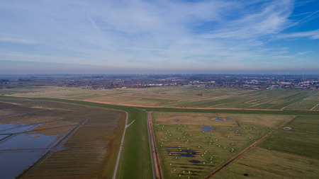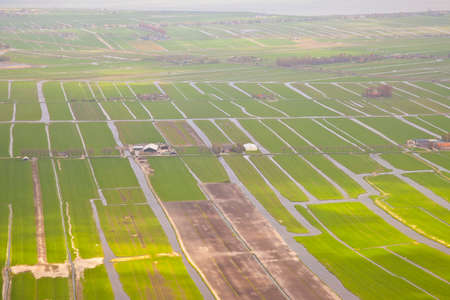 Aerial view and green nature landscape of province Zeeland, Netherlands,