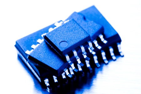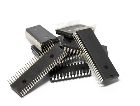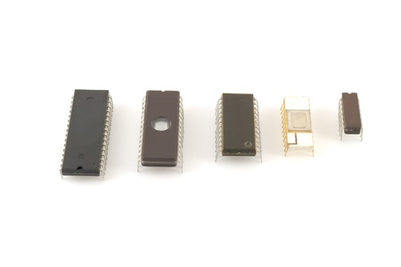 Old microchips over white