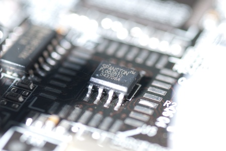 hi tech close-up of electronics circuit board or motherboard