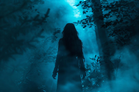 The Eerie Presence of a Haunting Female Spirit. Concept Ghostly Encounters, Supernatural Sightings, Haunted Spirits, Spooky Apparitions, Creepy Encounters