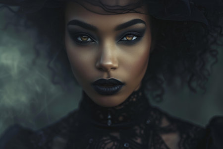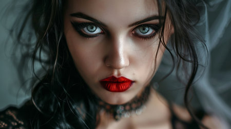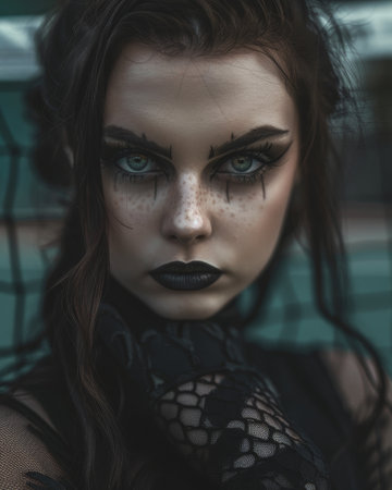 Striking portrait of a gothic woman with dramatic makeup and dark attire